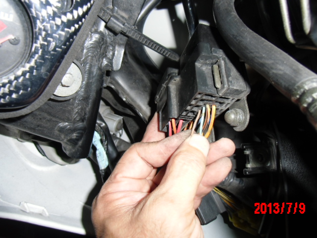 純正のウィンカーリレーのボルトを2本外し、茶色と水色の線をカット!